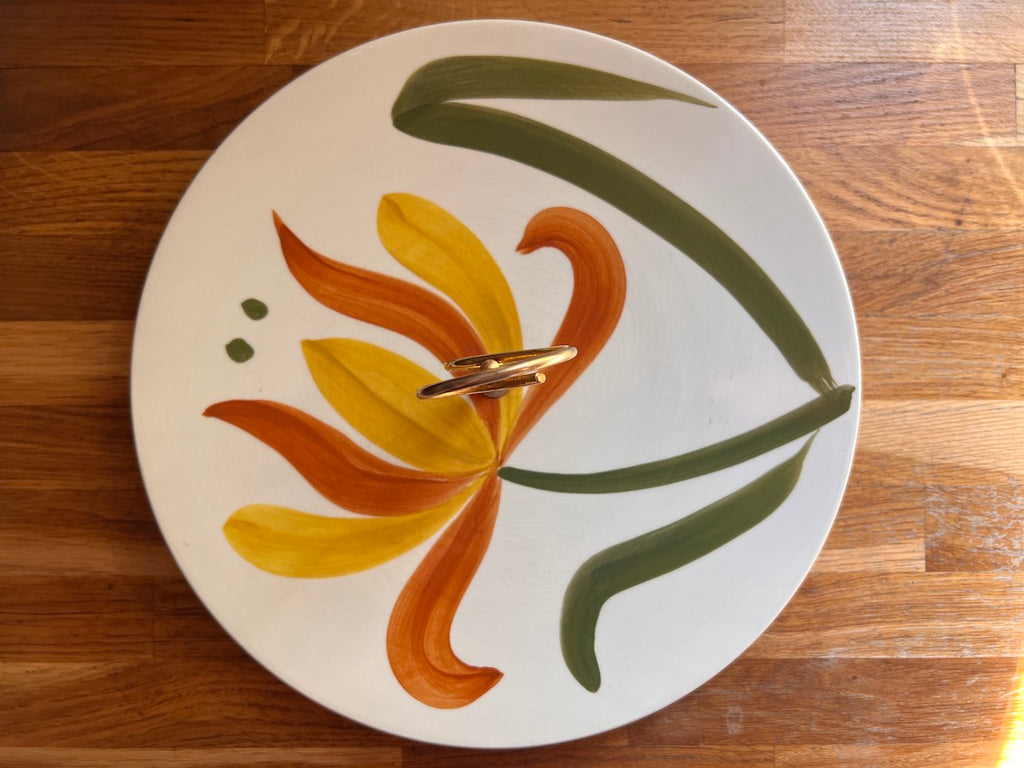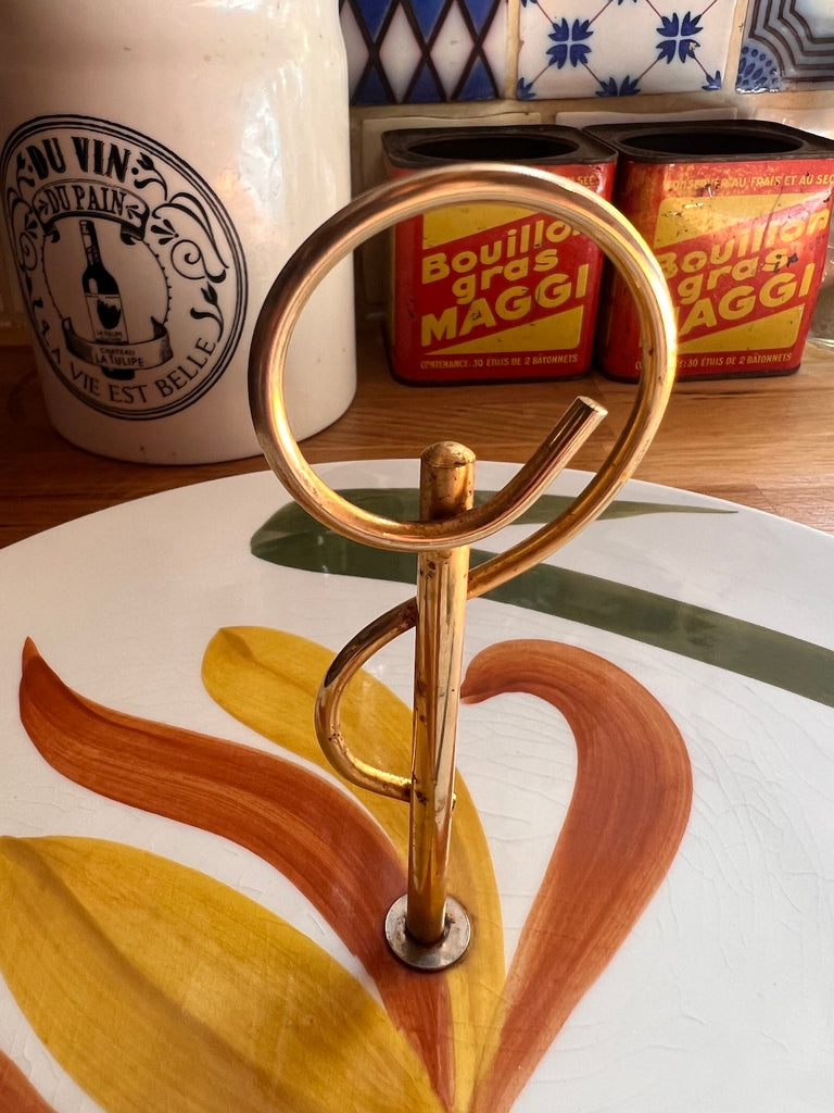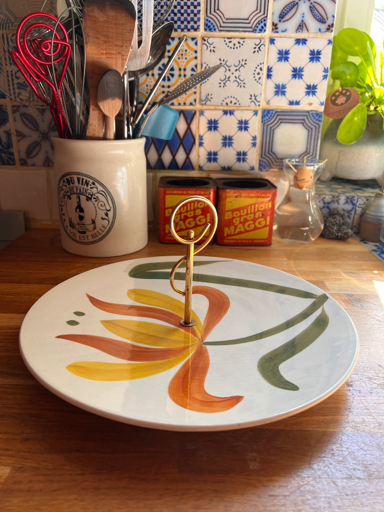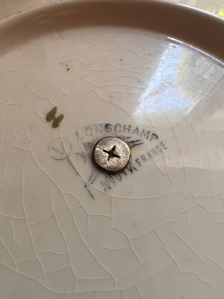 Plat serviteur vintage Longchamp en faïence peint à la main - Années 70
