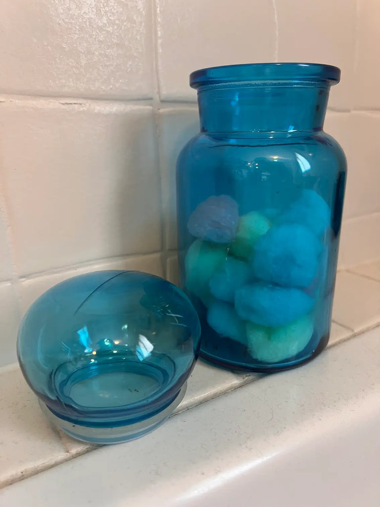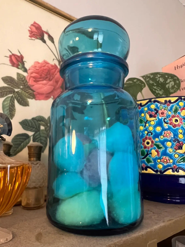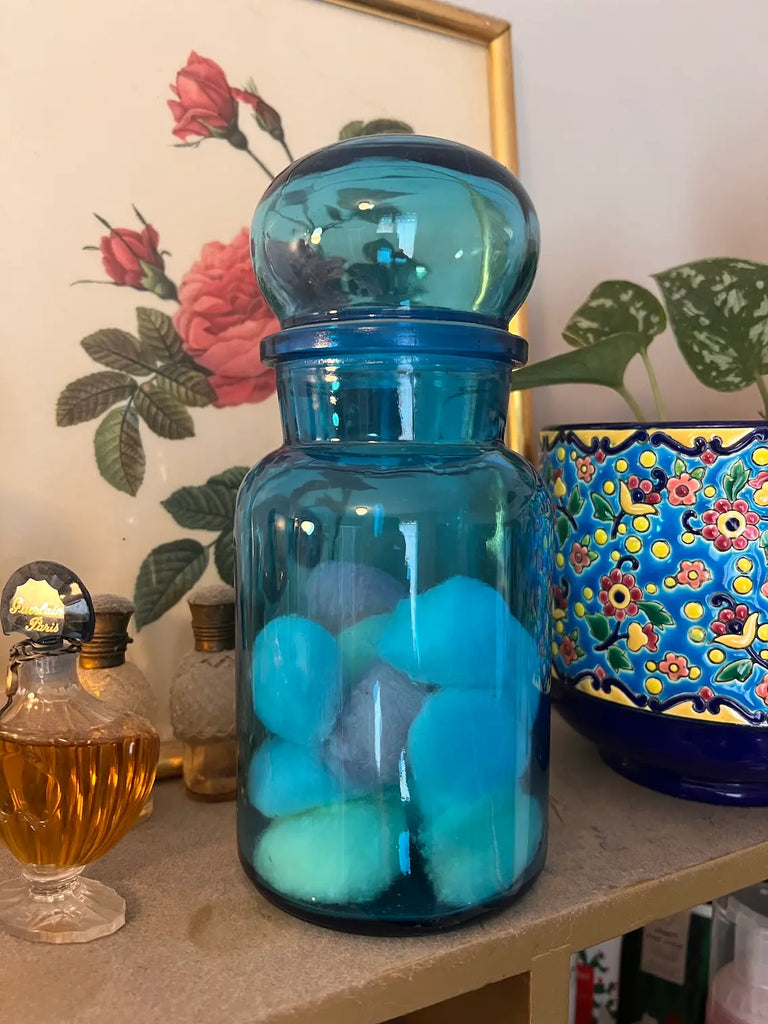 Pot d'apothicaire vintage en verre bleu Dash - Made in Belgium