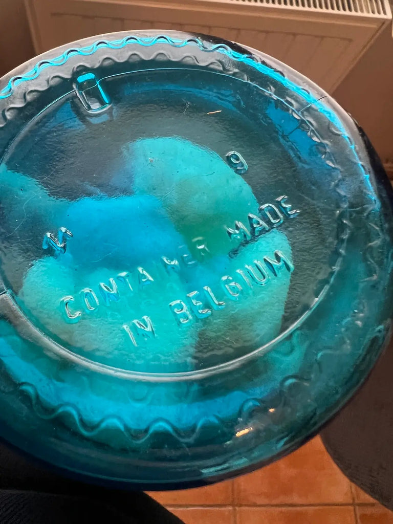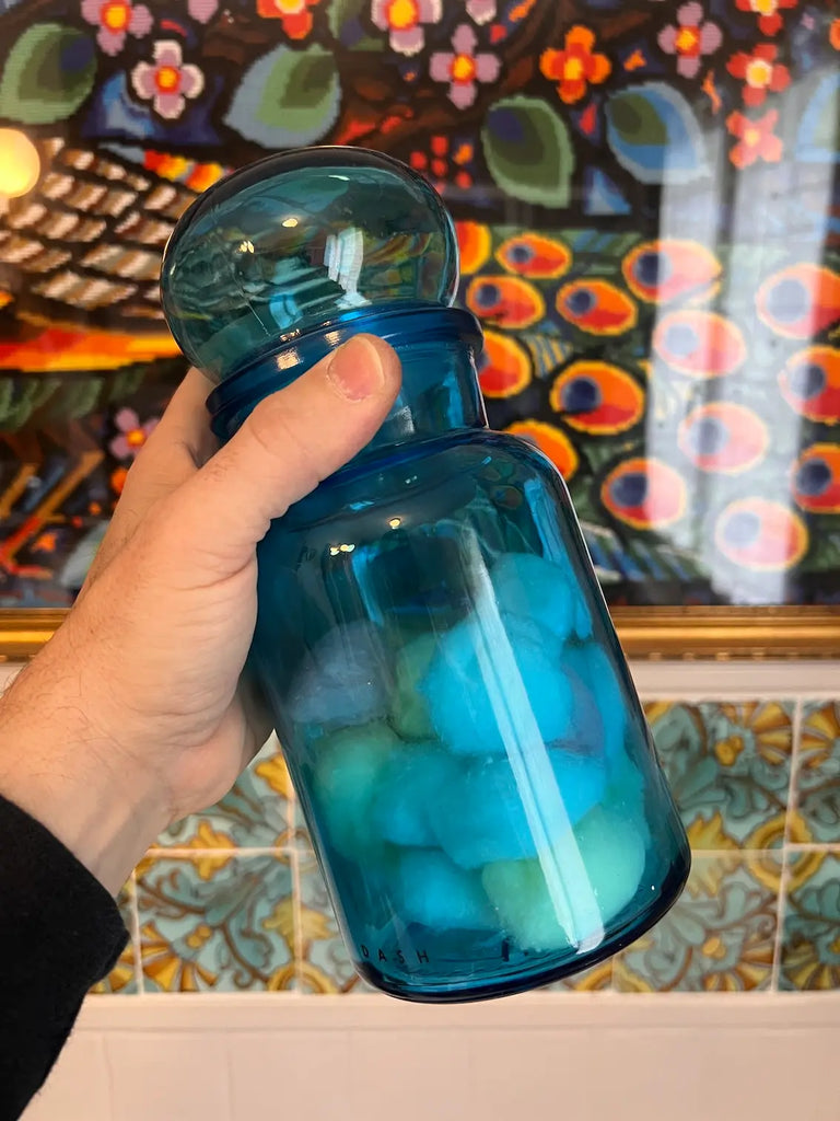 Pot d'apothicaire vintage en verre bleu Dash - Made in Belgium.